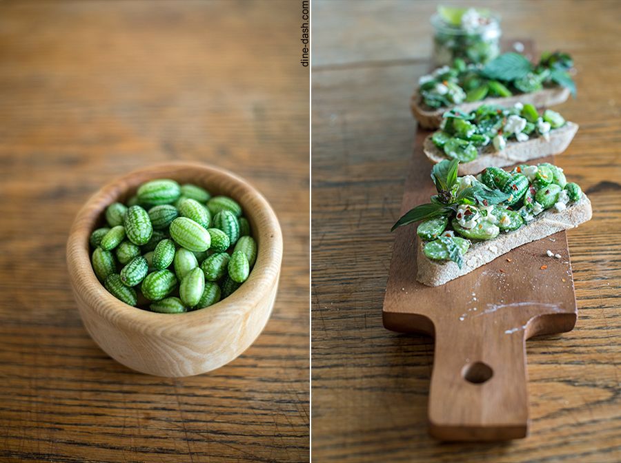 Cucamelons, also known as mouse melons, Mexican miniature watermelons or Mexican sour cucumbers, look like tiny watermalons (and you know that I love all things tiny, see: baby eggplants) and taste like cucumbers with a hint of lime. In spite of appearances, they have not been created by a crazy gardener - cucamelons are native to Mexico and Central America. Oh, and they are also delicious!